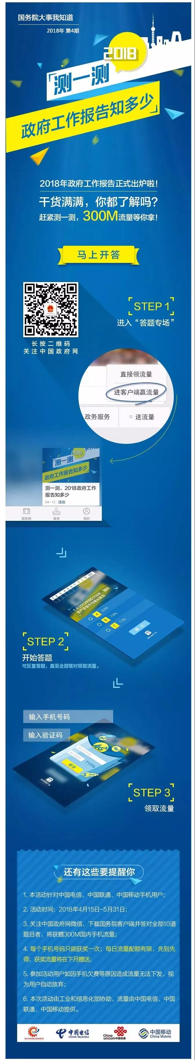 百萬G流量等你來搶!2018政府工作報告答題專場來了!
